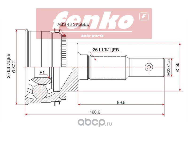 | Fenko | 777C53887 | Шрус наружный TOYOTA PRIUS NH2# 1NZ 03- ABS | ||