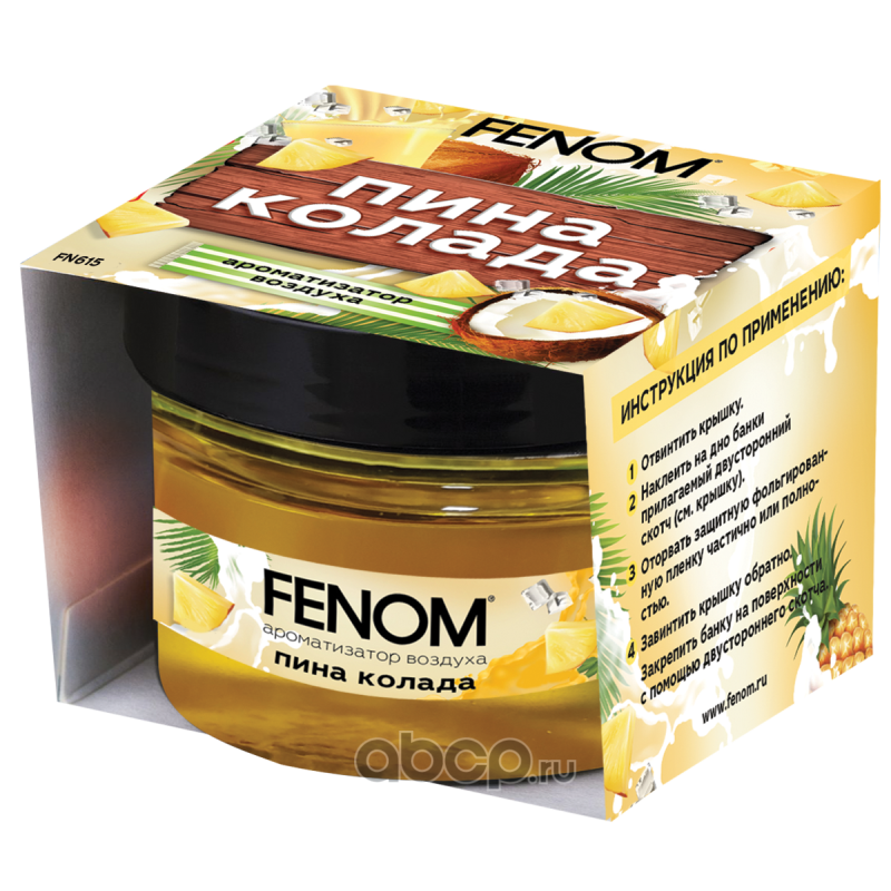 | Fenom | FN615 | Ароматизатор гелевый на приборную панель «Пина колада». | ||