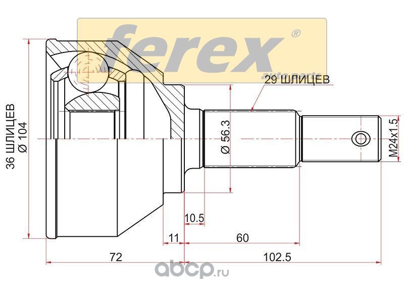 | Ferex | FRX1752 | Шрус наружный NISSAN TEANA PJ32 08- VQ35 | ||