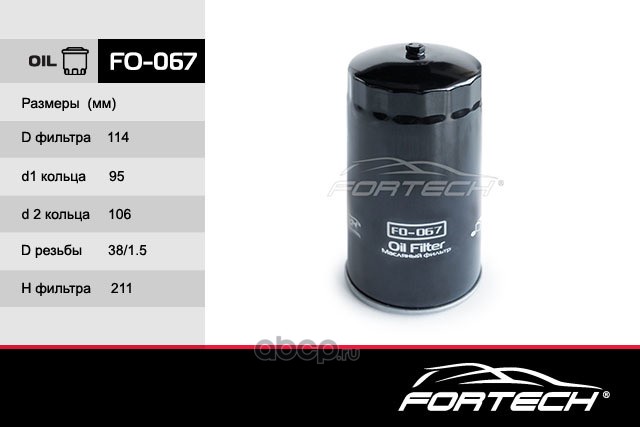 | Fortech | FO067 | Фильтр масляный | ||