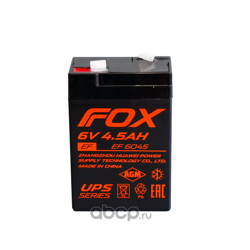 | Fox | EF6045 | Батарея аккумуляторная 6В 4,5А/ч AGM F1 (под клемму 187) | ||