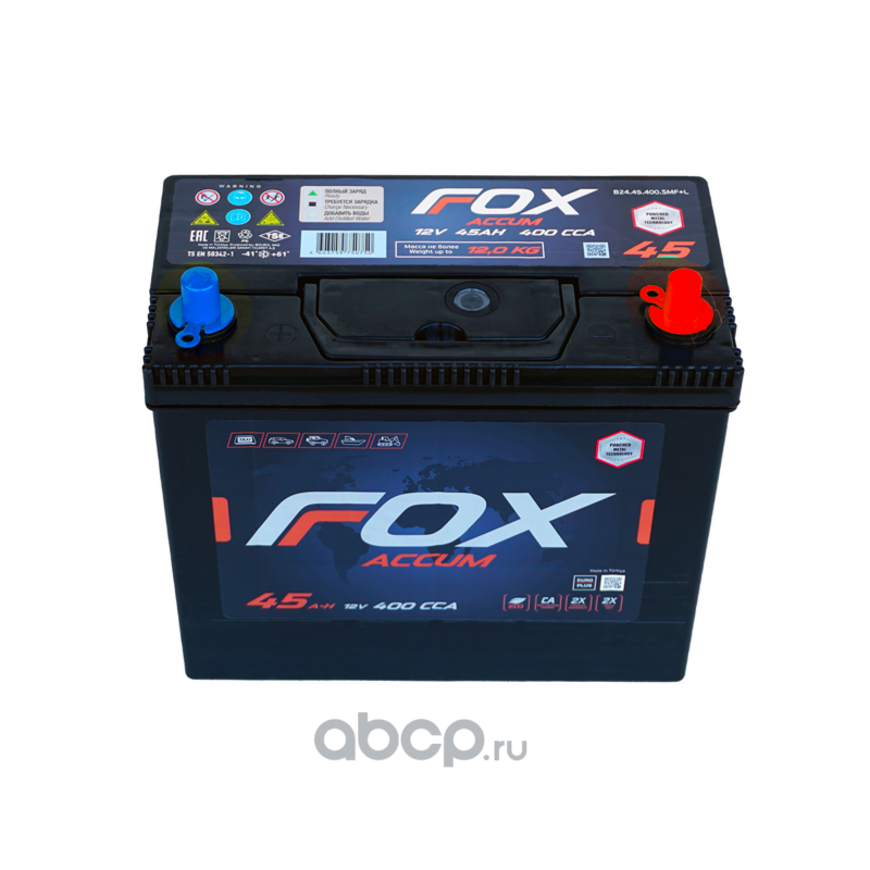 | Fox | B2445400SMF | Батарея аккумуляторная ASIA 12В 45А/ч 400CCA обратная полярность тонкие вынос. (Азия) клеммы | ||