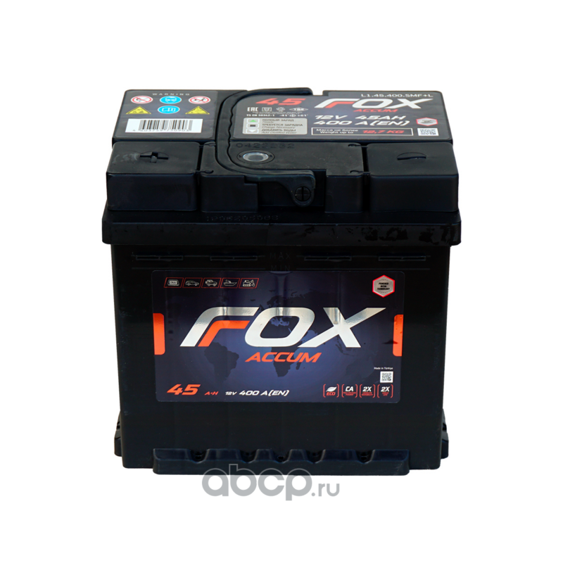 | Fox | L145400MFL | Батарея аккумуляторная 12В 45А/ч 400EN прямая полярность стандарт (Европа) клеммы | ||