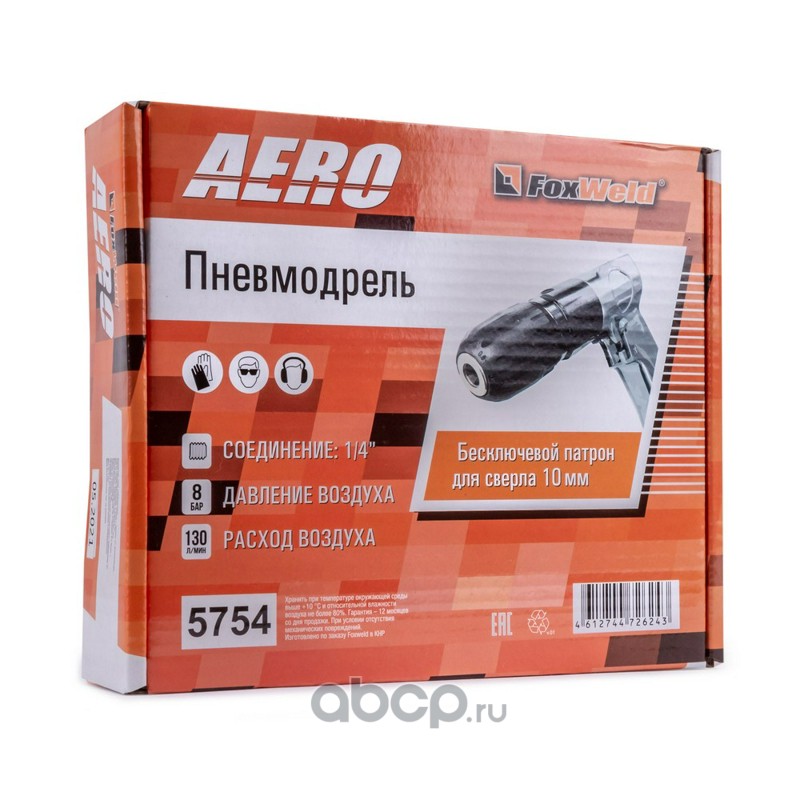 | FoxWeld | 5754 | Пневмодрель с бесключевым патроном 10 мм AERO | ||