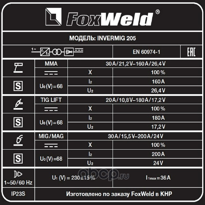 | FoxWeld | 6378 | Сварочный полуавтомат Invermig 205 | ||