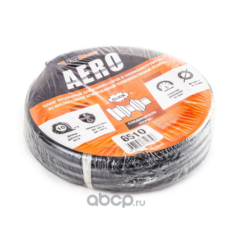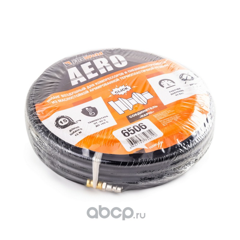 | FoxWeld | 6510 | Резиновый маслостойкий воздушный шланг с фитингами Rapid, 20 бар, 15х9 мм, 10 м. AERO | ||