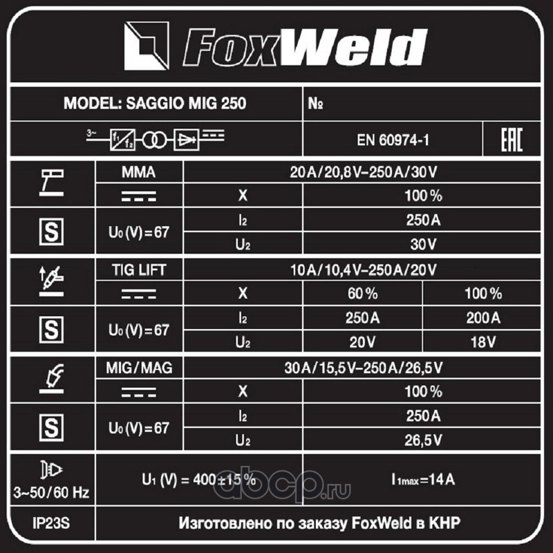 | FoxWeld | 6133 | Сварочный полуавтомат Saggio Mig 250 | ||