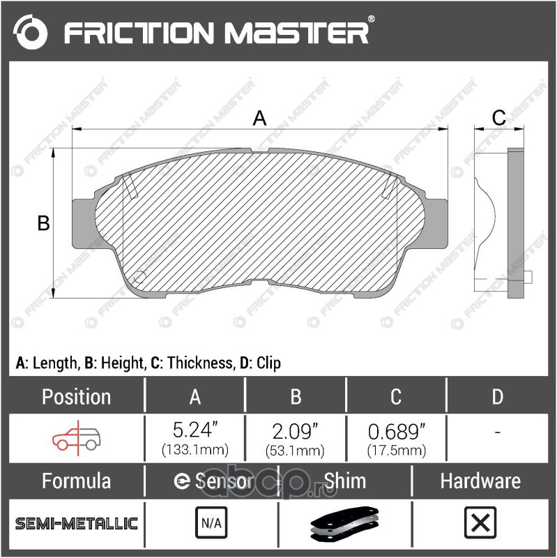 | Friction Master | MX881 | Колодки тормозные дисковые | ||