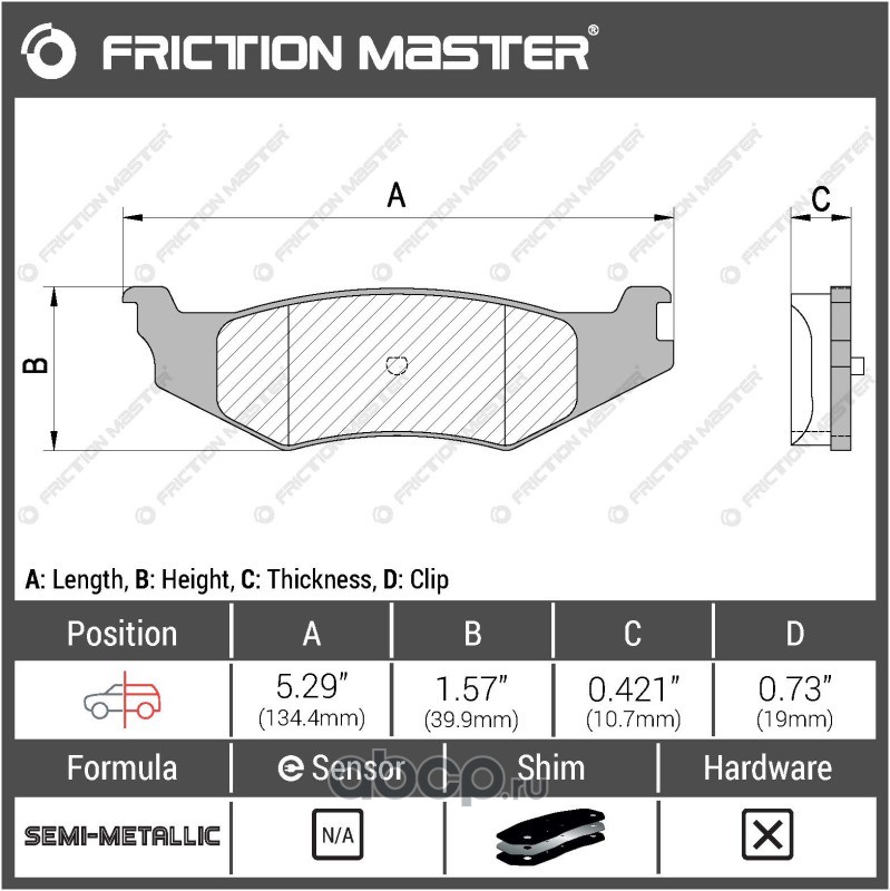 | Friction Master | D421 | Дисковые тормозные колодки | ||