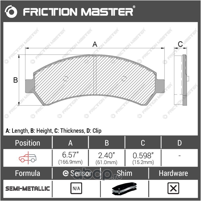 | Friction Master | MX1164 | Колодки тормозные дисковые | ||