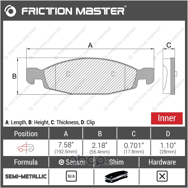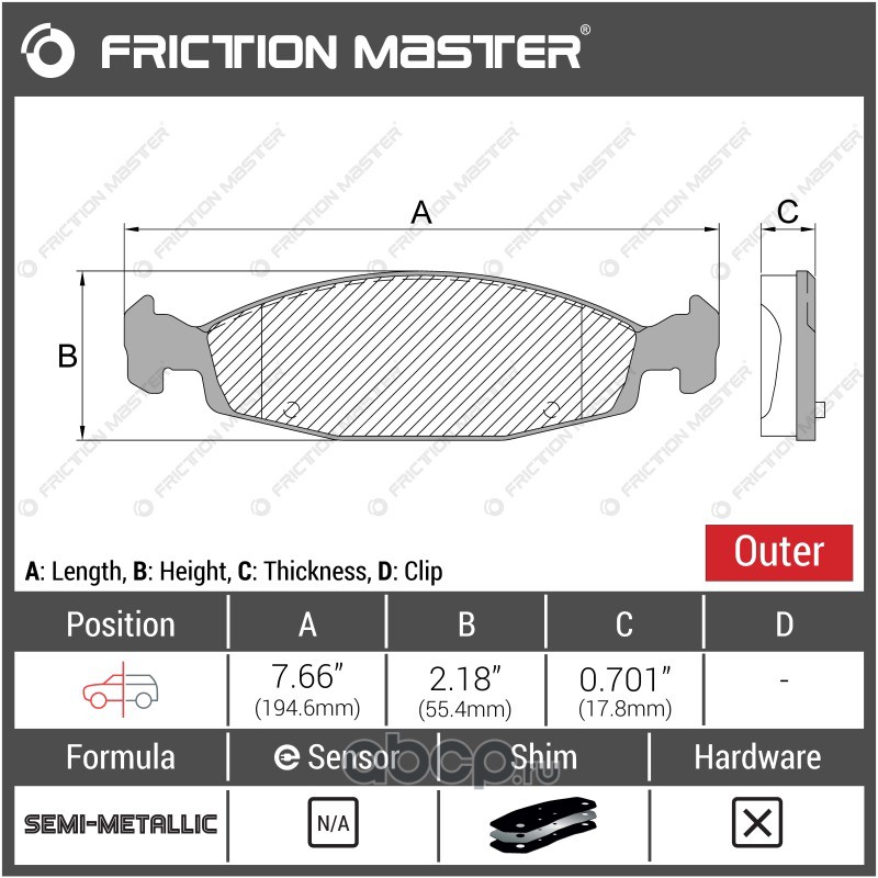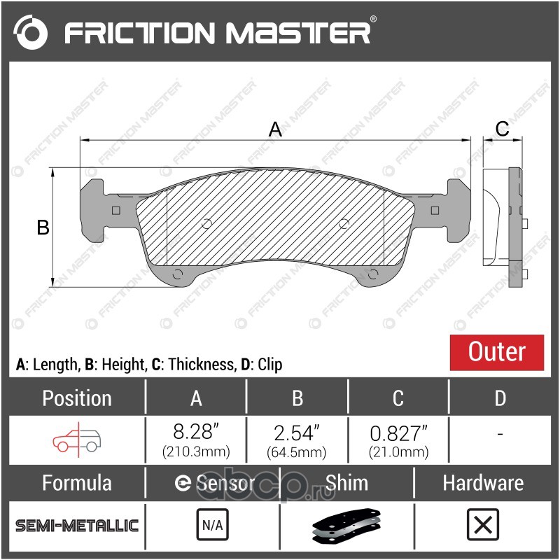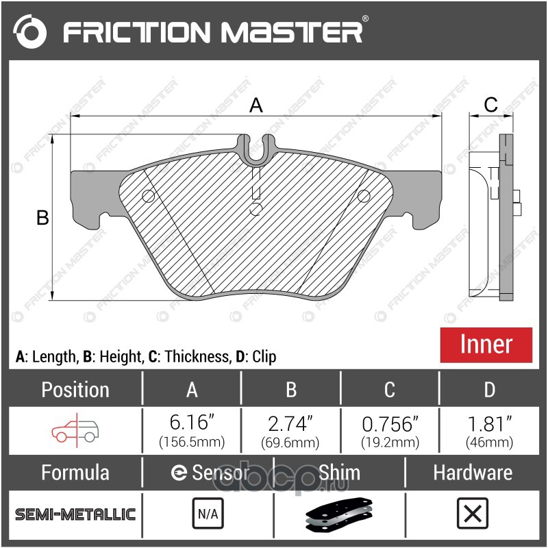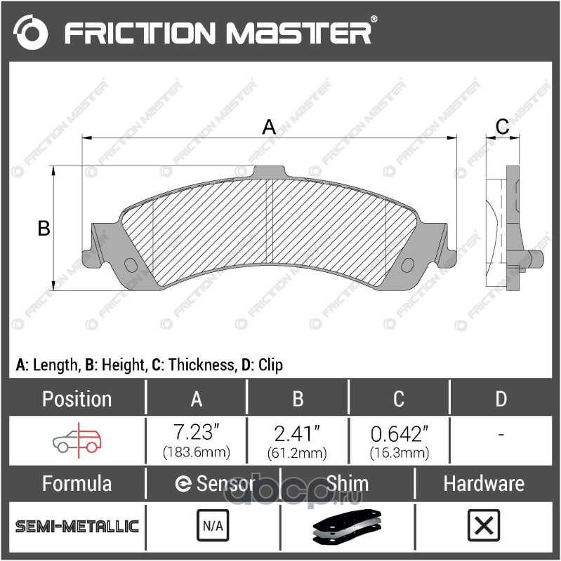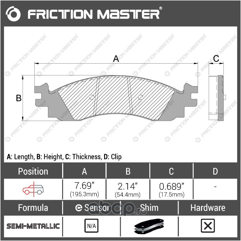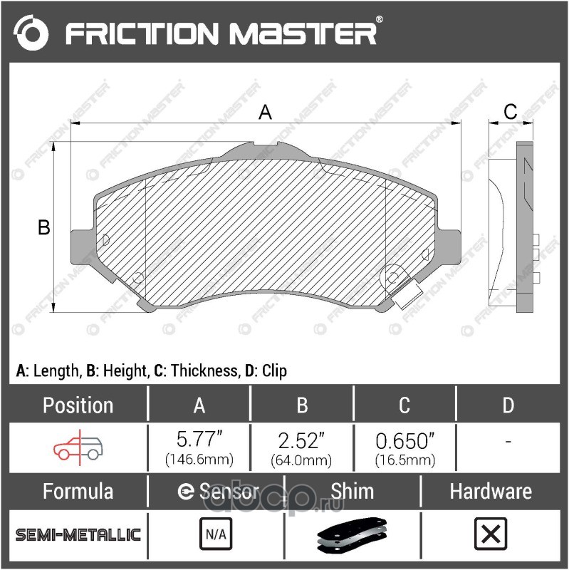 | Friction Master | CMX888 | Колодки тормозные дисковые | ||