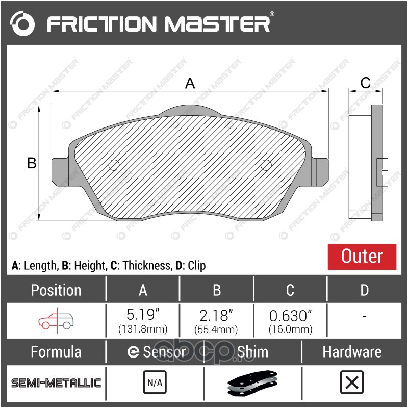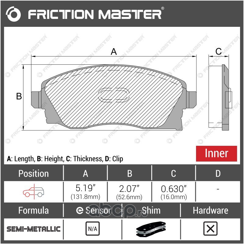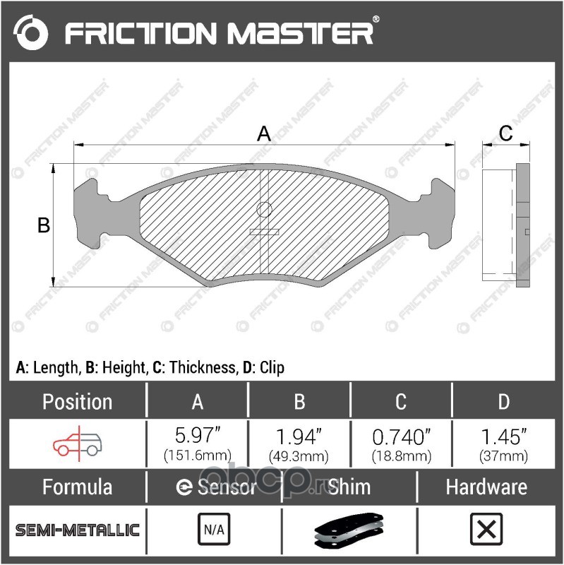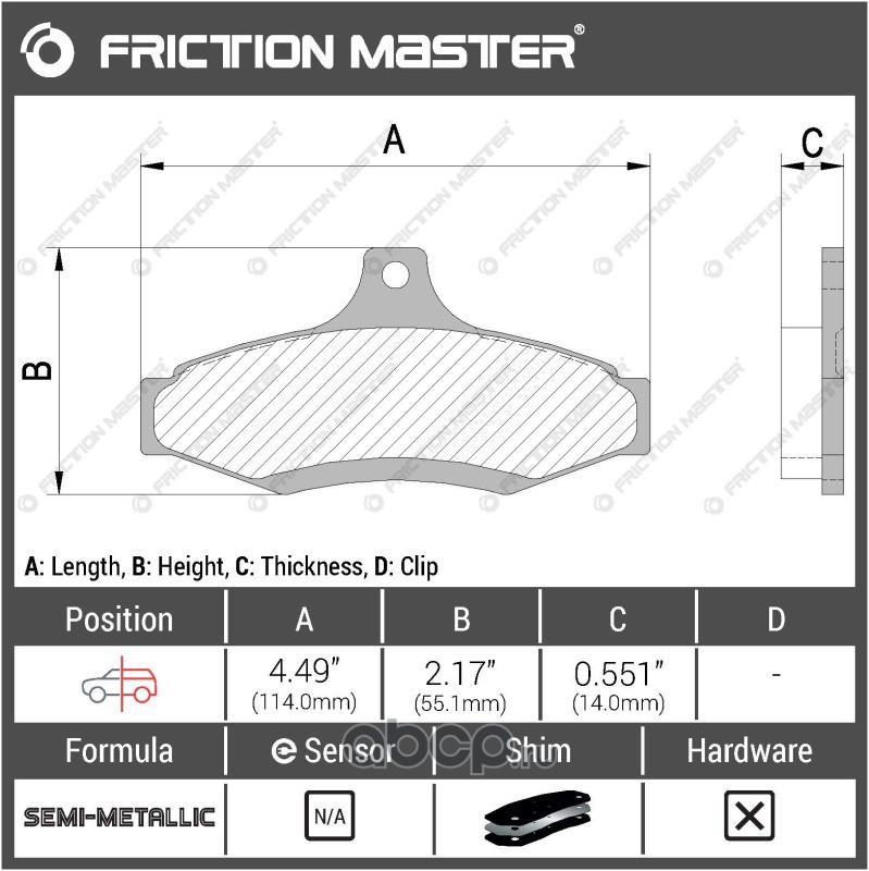 | Friction Master | MKD350 | Колодки тормозные дисковые | ||