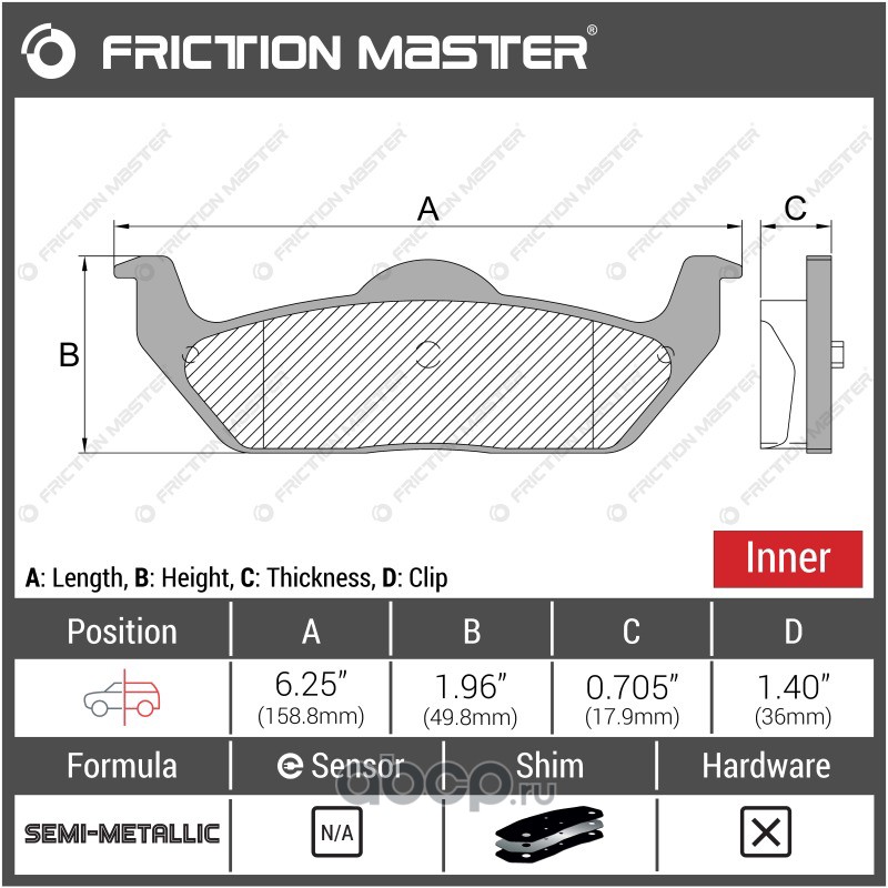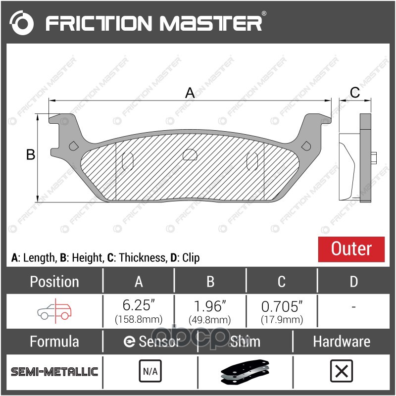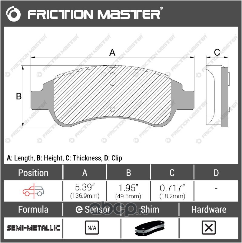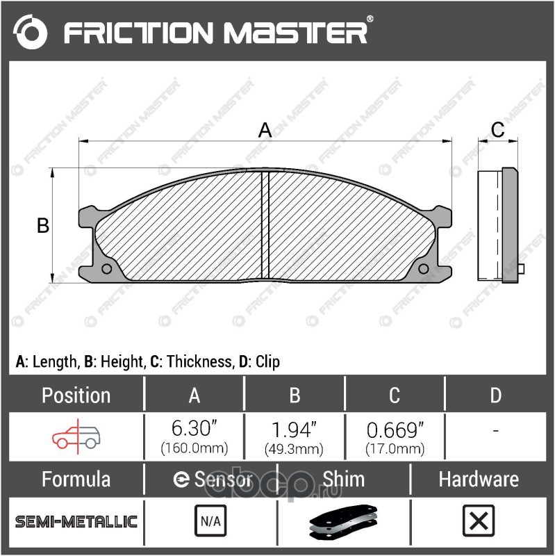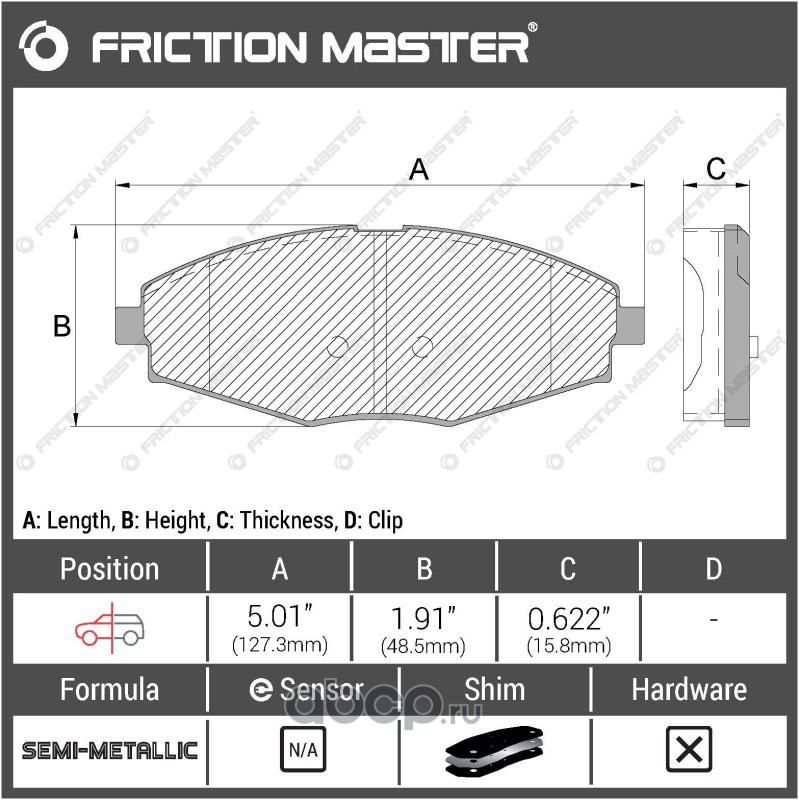 | Friction Master | MKD822 | Колодки тормозные дисковые | ||