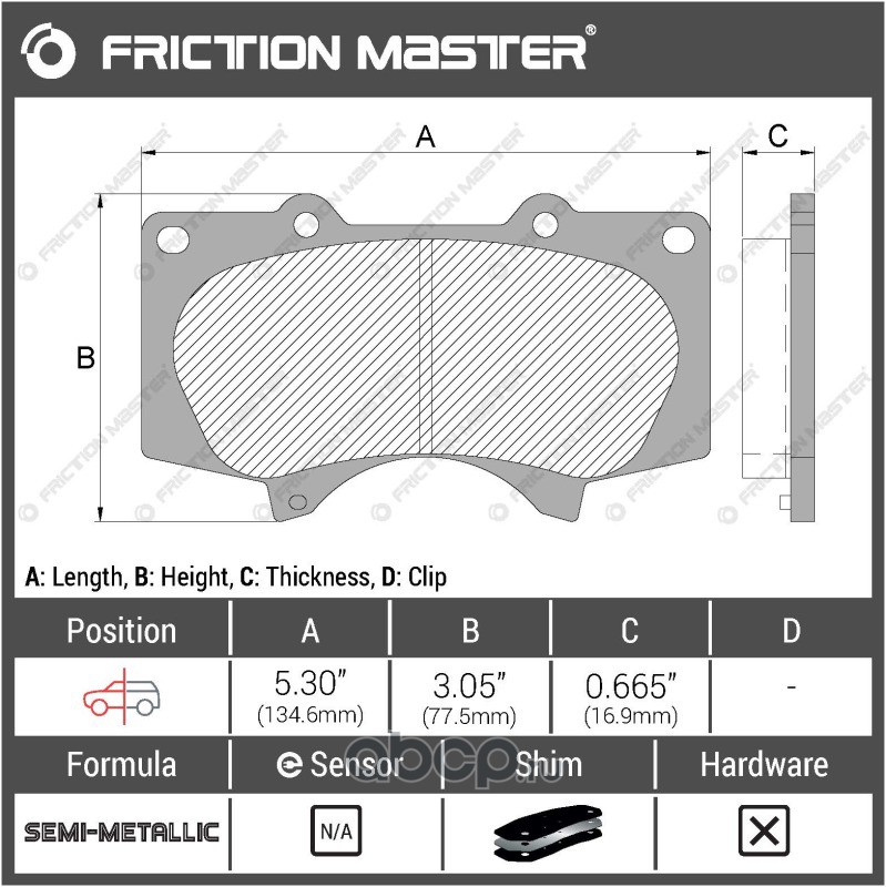 | Friction Master | CMX1035 | Колодки тормозные дисковые |