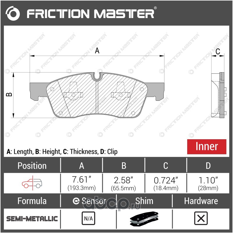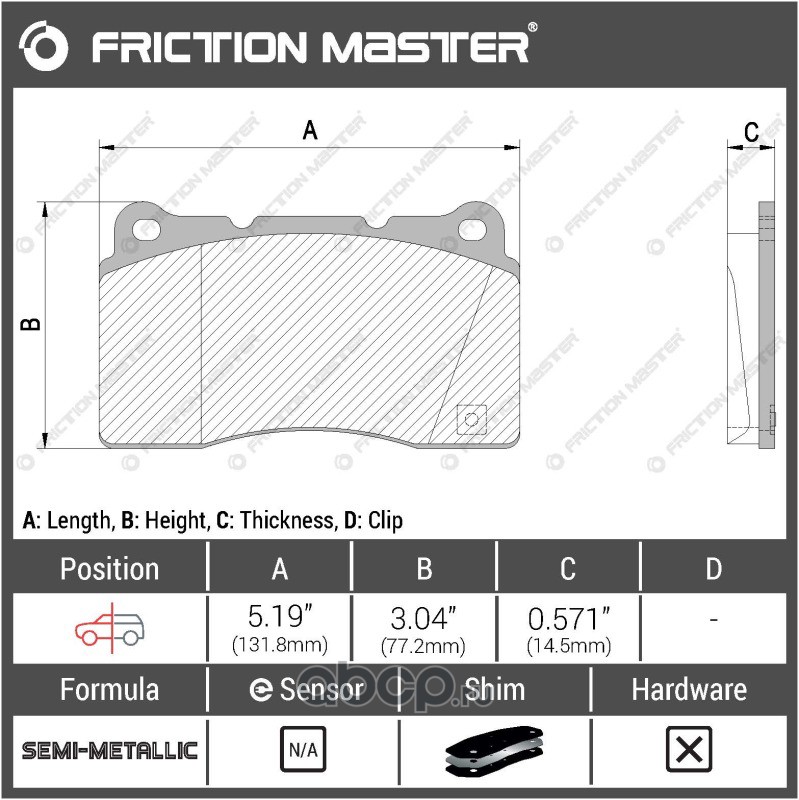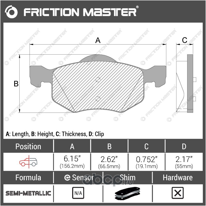 | Friction Master | CMX1912 | Колодки тормозные дисковые | ||