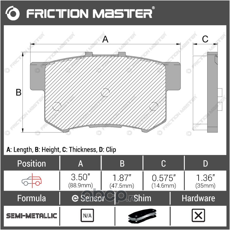 | Friction Master | CMX1001 | Колодки тормозные дисковые | ||