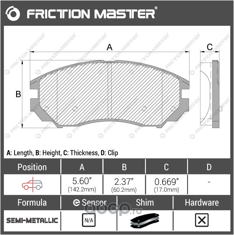 | Friction Master | MKD888 | Колодки тормозные дисковые | ||