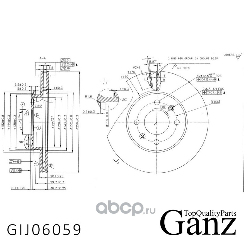 GANZ | GIJ06103SN0 | Диск тормозной передний перфорированный PRO-Line с покрытием (компл.2 шт), Уценка | |