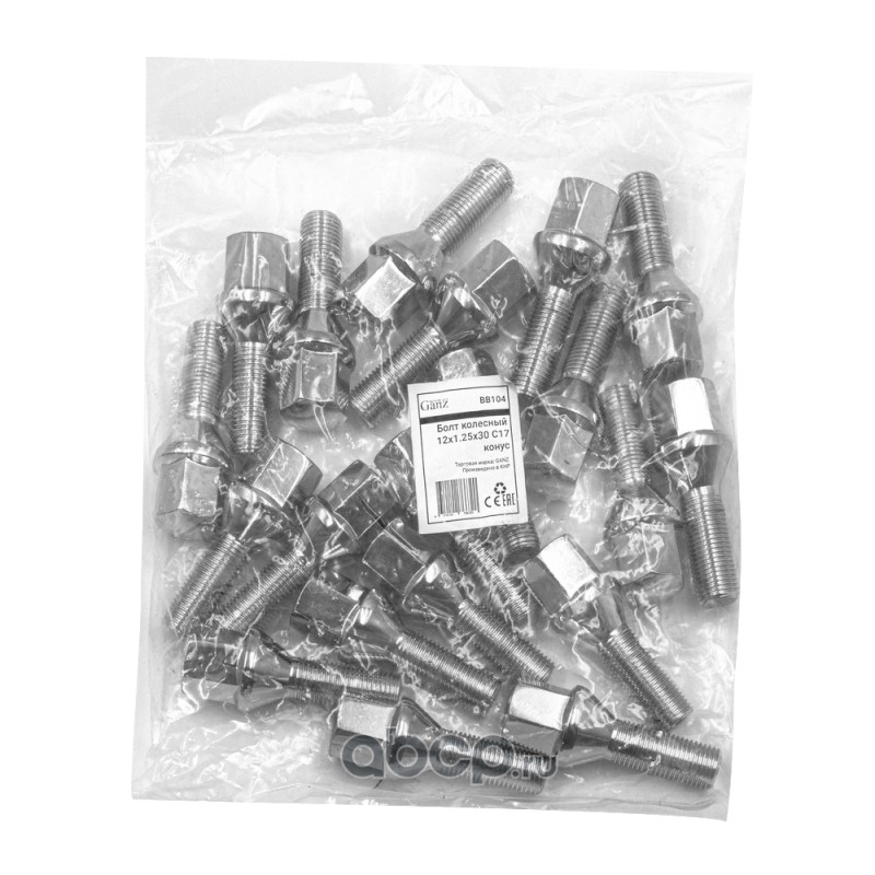 | GANZ | BB104 | Болт колесный 12x1.25x30 C17 конус |