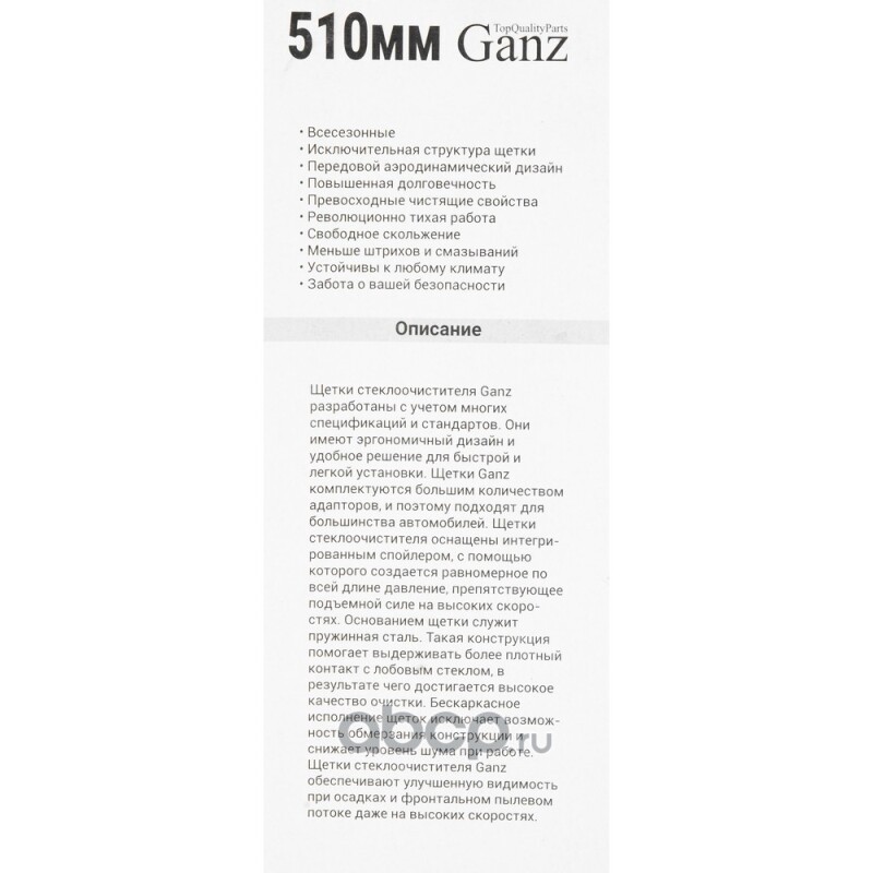 | GANZ | GIS01019 | Щетка стеклоочистителя бескаркасная NEW UNIVERSAL 510mm | ||