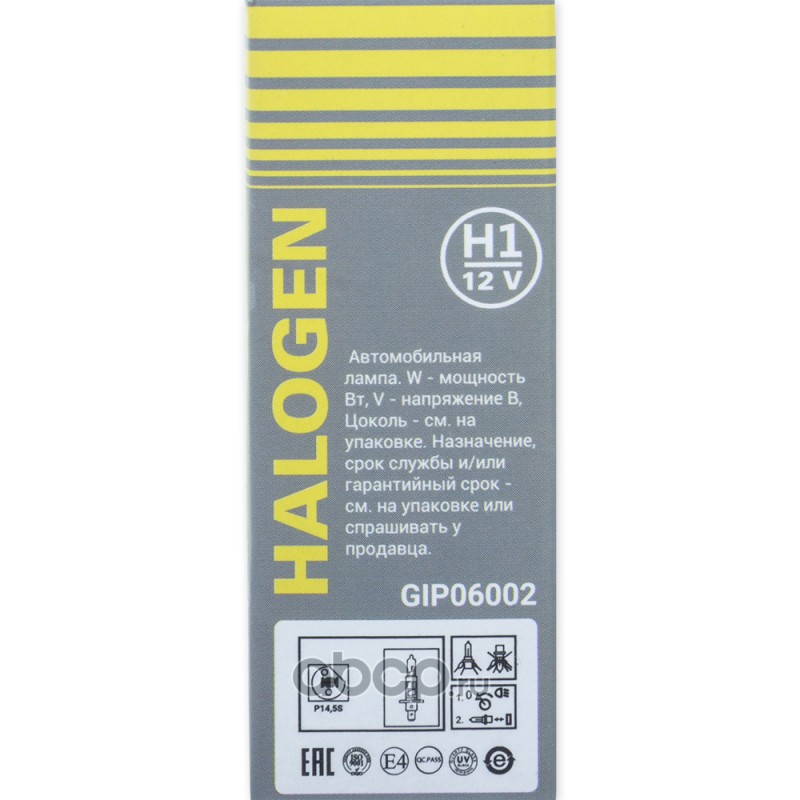 | GANZ | GIP06002 | Галогенная лампа H1 12v 100w (P14,5s).1 шт. | ||