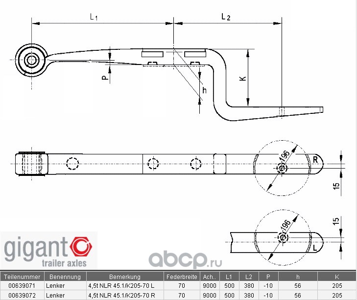 | GIGANT | 700639071 | Полурессора GIGANT NLR45.1/K205-70L (ширина 70mm) | ||