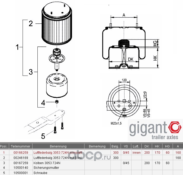 | GIGANT | 700166259 | Пневмобаллон 3053 VS=0/45 в сборе со стаканом |