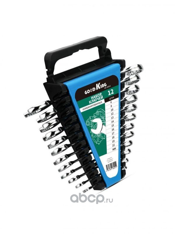 Набор ключей комбинированных GOODKING KK-10012, 12 предметов (6, 8, 10, 12, 13, 14, 15, 16, 17, 18, 19, 22 мм) в пластиковом держателе