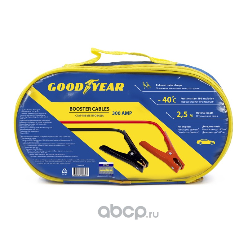 | GOODYEAR | GY003010 | Провода прикуривания GoodYear 300A 2.5м в сумке Россия | ||