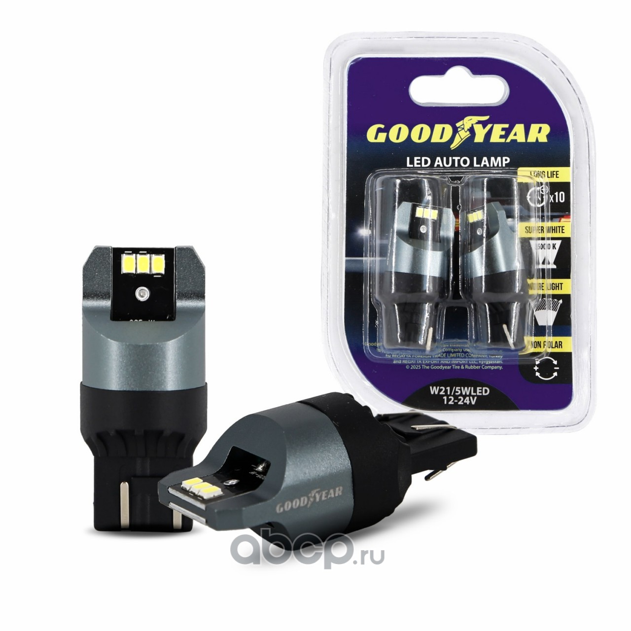 | GOODYEAR | GY015025 | Лампа автомобильная светодиодная Goodyear W21/5WLED 12-24V /к-т 2шт | ||