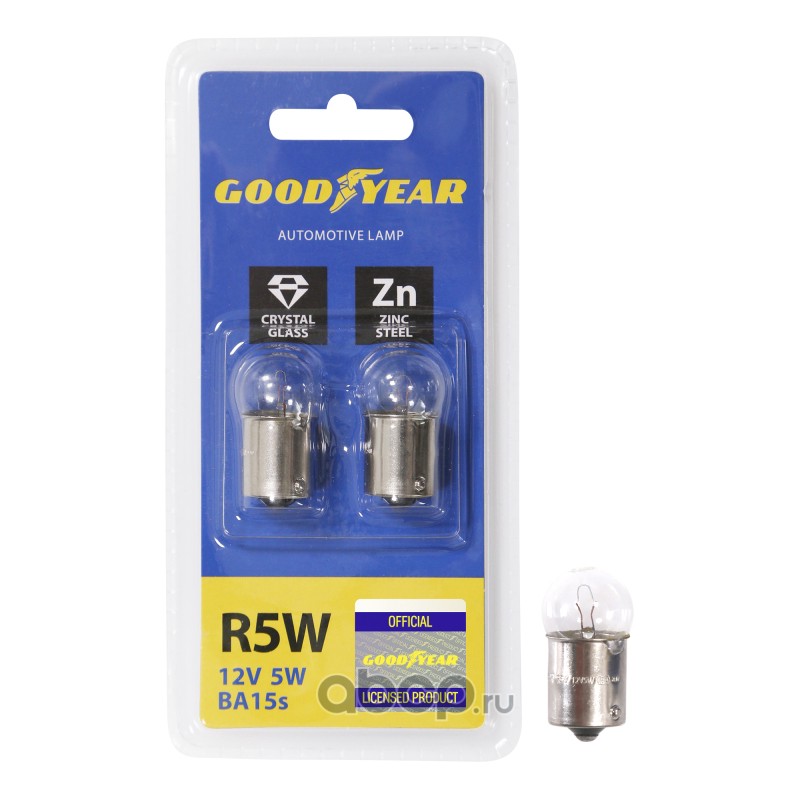| GOODYEAR | GY012206 | Лампа 12 V 5 W (габариты,стоп-сигнал,задн.ход,подсв.ном) ВА15s (блистер 2шт) | ||