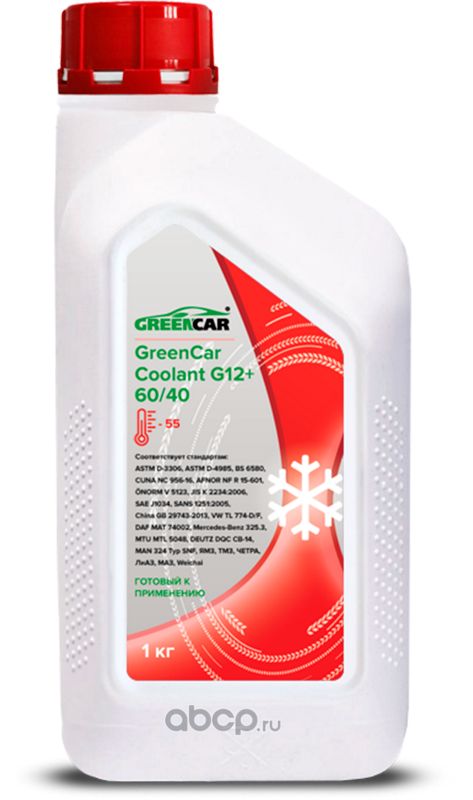 | GREENCAR | GCC005 | Антифриз G12+ 60/40, красный 1кг | ||