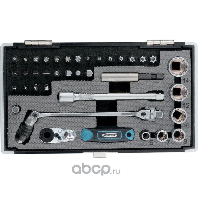 Набор бит и головок торцевых, 1/4, карданный ключ, трещотка, адаптер, S2, 37 шт. Gross