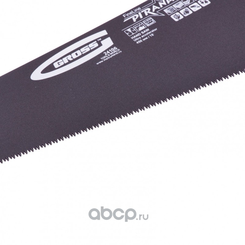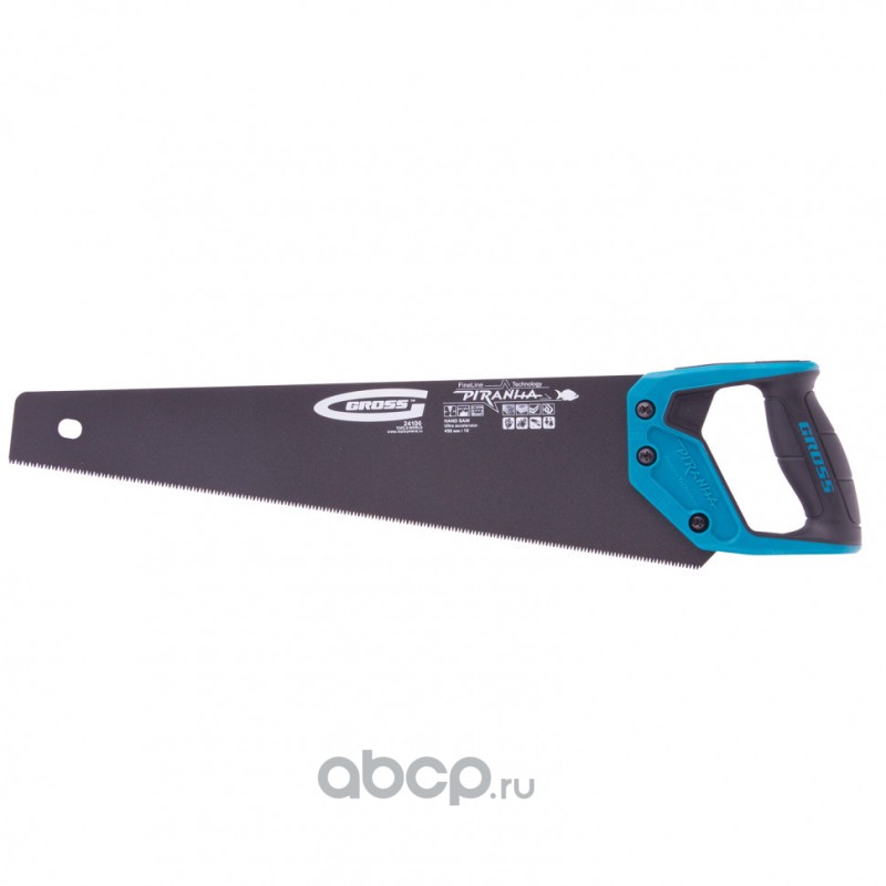 Ножовка по дереву "Piranha", 450 мм, 11-12 TPI, зуб-3D, каленый зуб, тефлоновое покрытие полотна, двухкомпонентная рукоятка Gross