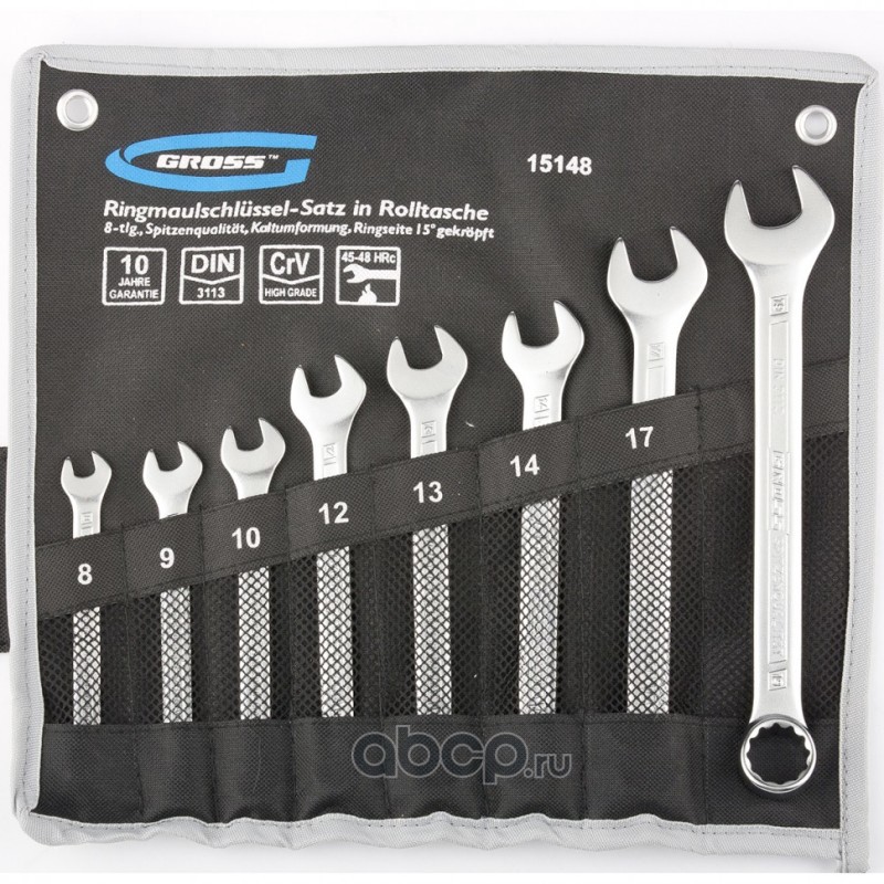 Набор ключей комбинированных 8-19 мм, 8 шт, CrV, холодный штамп Gross