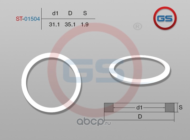| GS | ST01504 | Тефлоновое кольцо 31,1*35,1*1,9 | ||