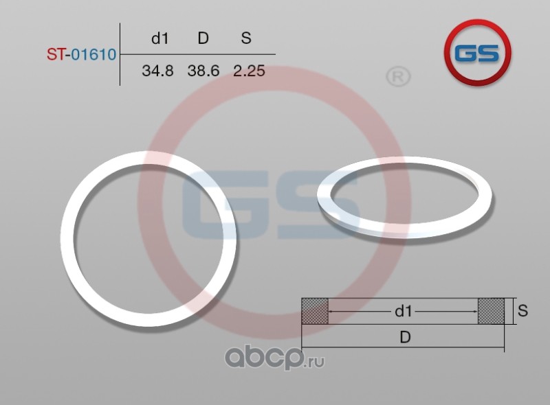 | GS | ST01610 | Тефлоновое кольцо 34,8*38,6*2,25 | ||