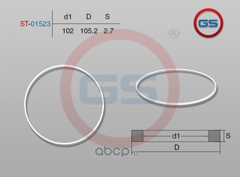 | GS | ST01523 | Тефлоновое кольцо 102*105,2*2,7 | ||