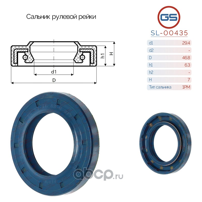 | GS | SL00435 | Сальник рулевой рейки 29.4*46.8*6.3/7 (1PM) | ||