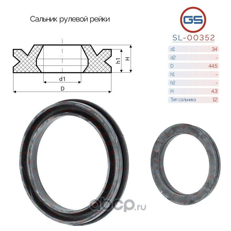 | GS | SL00352 | Сальник рулевой рейки 34*44.5*4.3 (12) | ||