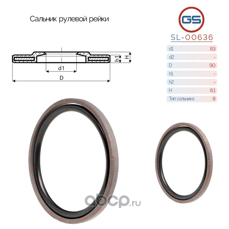 | GS | SL00636 | Сальник рулевой рейки 83*90*6.1 (8) | ||