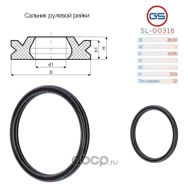 | GS | SL00316 | Сальник рулевой рейки 36*45*3.7 (12) | ||