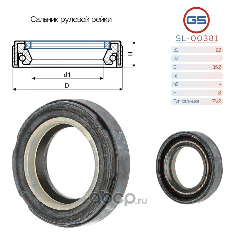 | GS | SL00381 | Сальник рулевой рейки 22*35.2*8 (7V2) | ||