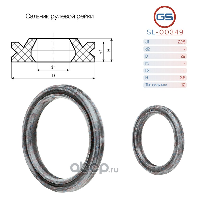 | GS | SL00349 | Сальник рулевой рейки 22.5*29*3.6 (12) | ||