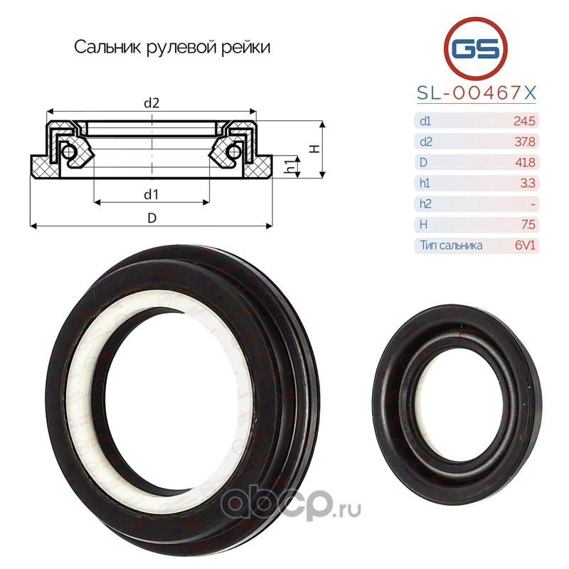 | GS | SL00467X | Сальник рулевой рейки 24.5*37.8/41.8*3.3/7.5 (6V1) | ||