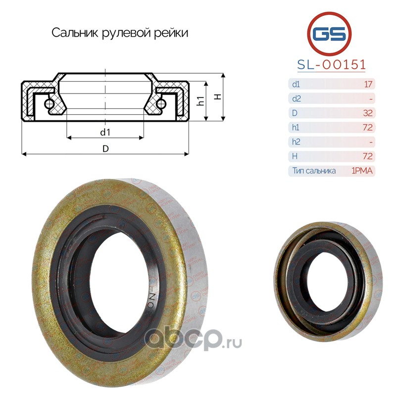 | GS | SL00151 | Сальник рулевой рейки 17*32*7.2/7.2 (1PMA) | ||