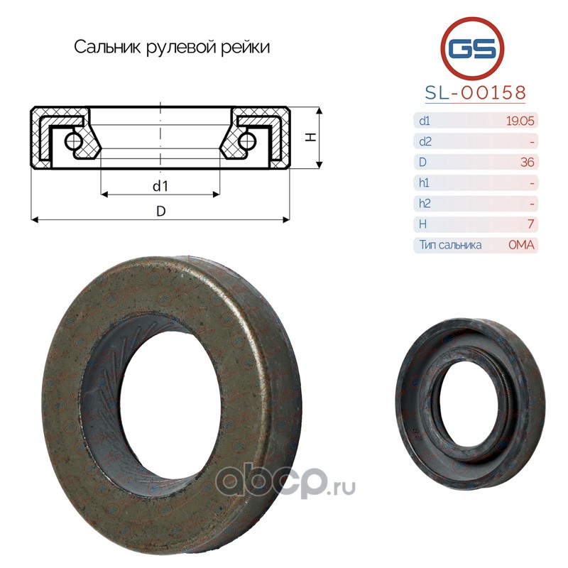 | GS | SL00158 | Сальник рулевой рейки 19.05*36*7 (0MA) | ||