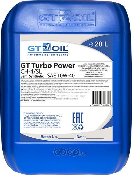 | GT OIL | 4665300010331 | Масло моторное полусинтетика GT OIL GT Turbo Power 10W-40 20 л. | ||