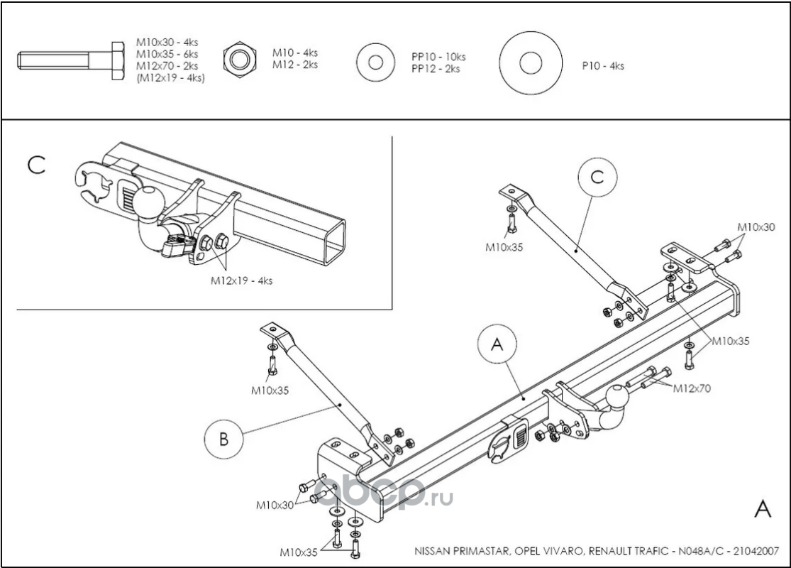 | Galia | N048A | Полностью оцинкованный фаркоп для Nissan Primastar 2002-2014, Opel Vivaro 2002-2014, Renault Trafic 2002-2014 тип шара A N048A | ||