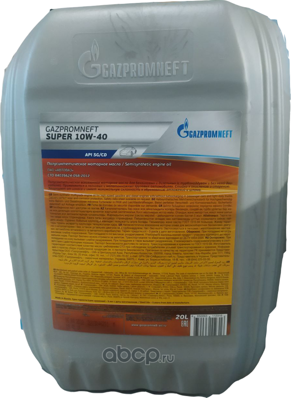| Gazpromneft | 2389900038 | Масло моторное полусинтетика Gazpromneft SUPER 10W-40 20 л. | ||
